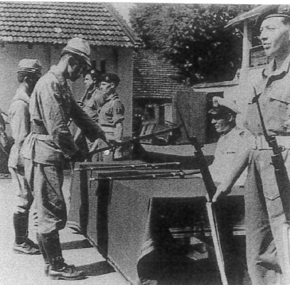 En vertu de la conférence de Postdam (26 juillet 1945) qui répartit la responsabilité pour le désarmement des troupes japonaises en Indochine entre les Britanniques au sud du 16º parallèle et